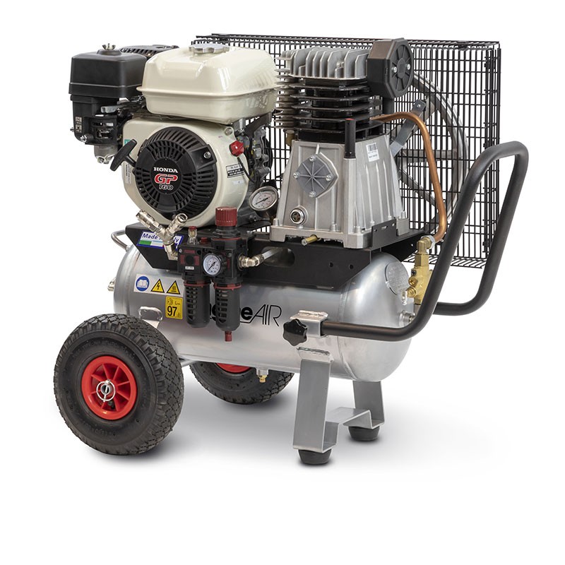 ABAC EngineAIR 5/24 LT 10 bar cod.1121440137 is an Abac petrol compressor with portable configuration : thanks to its sturdy wheels and practical handle , this Abac compressor with Honda petrol engine is easy to take wherever compressed air is needed.