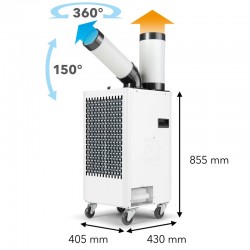 The Spotcool Trotec PT 2700 SP mobile air conditioner is designed to provide precise and immediate cooling directly at the workstation . Thanks to its vertical hot air exhaust duct , the heat generated by the device is expelled in another direction, with the option of installing an additional 6-meter air transport duct for greater flexibility of use.