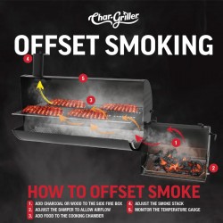 Constructed of heavy-duty steel with cast iron cooking grates , this Side Fire Box from Char-Griller features an EasyDump ash drawer and dual temperature control valves to keep the temperature at the desired level during both the grilling and smoking phases.