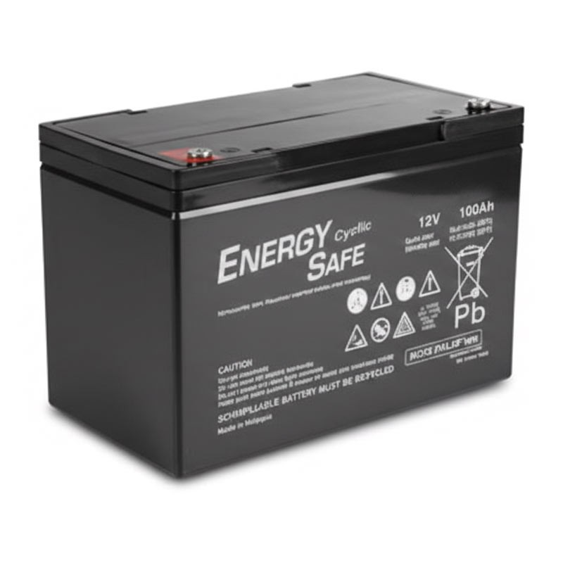 Accu Italia Energy Safe Cyclic 12V 100 Ah is a professional, high-capacity cyclic AGM battery designed for deep discharge applications with high, continuous energy loads. Ideal for photovoltaic systems , UPS systems , industrial backups, and electric mobility , it guarantees voltage stability and operational continuity even under heavy use. Sealed AGM VRLA technology with absorbed electrolyte allows for safe, maintenance-free operation and constant performance under prolonged load.