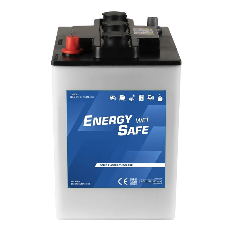 Accu Italia ES06250T is a 6V lead-acid battery with liquid electrolyte from the Energy Safe Wet line, developed for continuous industrial use in the traction sector. Intended to power electric trucks , operating machines and goods handling systems, it offers high stability under load thanks to the internal configuration with tubular plate and a nominal capacity of up to 250 Ah (C20) .