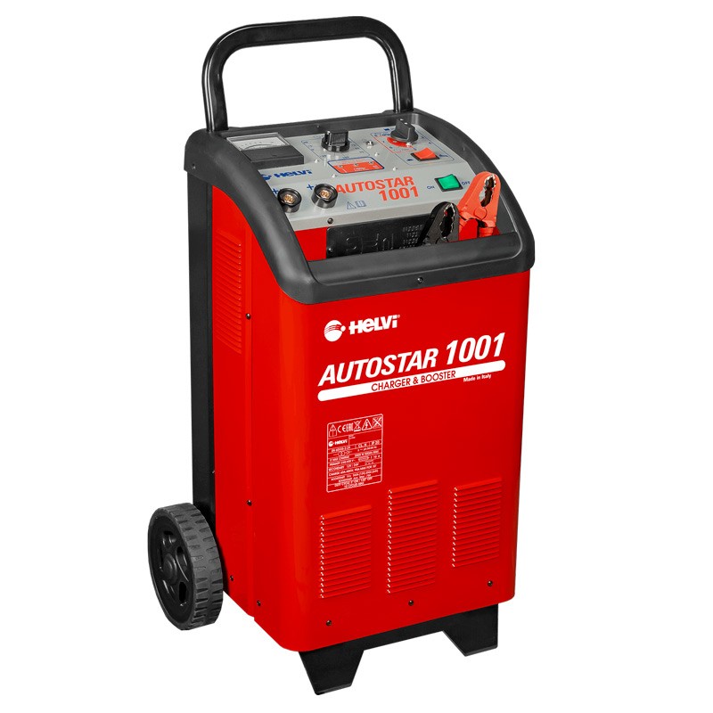 The Helvi Autostar 1001 battery charger cod. 99010038 is equipped with a charging current selector , ammeter , thermostatic protection, internal fuse against short circuits and polarity reversal . The charging timer is included.
