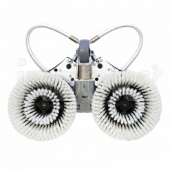 Rotating hydrokinetic brush for semi-professional use with a floating system featuring a double counter-rotating hydrokinetic brush ; applicable to high-pressure systems (max 50 bar and minimum 20 bar) and ideal for cleaning photovoltaic panels and windows.