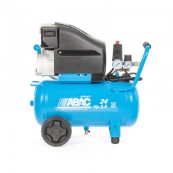 Coaxial compressor , Abac Pole Postition L25P has a direct transmission , as the pump unit is connected directly to the crankshaft. This feature allows for a smaller footprint : with dimensions of 62 x 24 x 58 cm and a weight of 28 kg, this Abac brand hobby compressor is extremely functional .