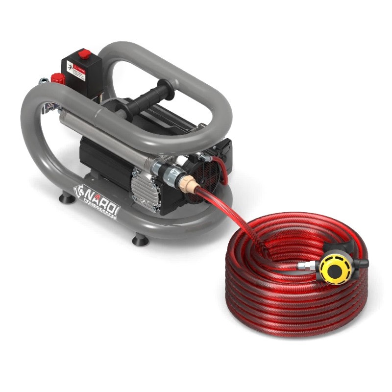 The Hookah line from Nardi Compressori offers a wide choice of oil-less compressors for breathable air, supplied complete with a dispenser with a 17 m hose and a filtering system , which allow the operator to breathe directly from the small 3 L tank , in total safety.