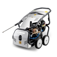 The Lavor Thermic 18 BS pressure washer is a safe machine, equipped with an oil -alert safety device. It also features a stainless steel pressure relief valve with EASY-START and a thermostatic valve; the cartridge water filter is accessible for inspection, and water can be drawn from an external tank ( self-priming pumps ). A hose reel with 20 m of hose is available upon request .