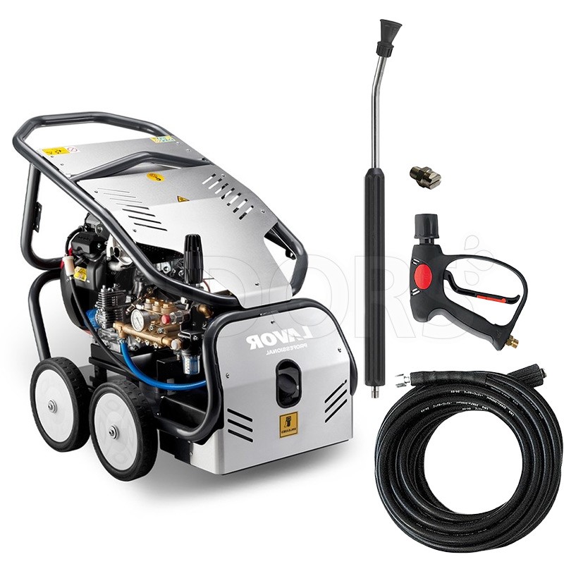 Lavor Thermic 18 BS is equipped with a Briggs & Stratton Vanguard engine with 18 HP power and axial pump unit, three-piston aluminium head in high-strength steel with built-in by-pass valve with 1560 RPM , TW pump, TW 500 bar Premium , with 3 ceramic pistons and brass head .
