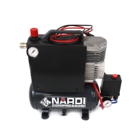 This lightweight and compact compressor from Nardi features a die-cast aluminum case . All the materials used in this professional 8 bar compressor have been designed to ensure maximum reliability and durability . Minimal maintenance is required on all components assembled on the Nardi Silverstone 2 12/24 V compressor. A specific heat treatment on the components helps extend the life and performance of the compact Nardi Silverstone 2 12/24 V compressor.
