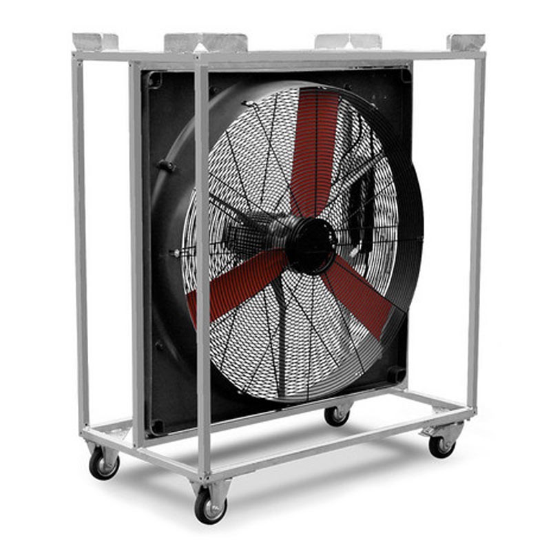 The presence of rubber-coated metal industrial wheels and a transport frame with parking brakes make this fan easily transportable, even on uneven surfaces. It can be maneuvered with forklifts or cranes in areas where frequent movement is required, without compromising stability during operation.