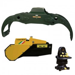 MHS Complete, pre-assembled forestry kit consisting of a TMR 1400 forestry grapple , an IT 450 CTH hydraulic chainsaw , and a hydraulic rotator . Designed for professional felling, sectioning, and log handling, it is compatible with machines weighing 4 to 7 tons . Supplied with an integrated plate and hydraulic system, ready for assembly.