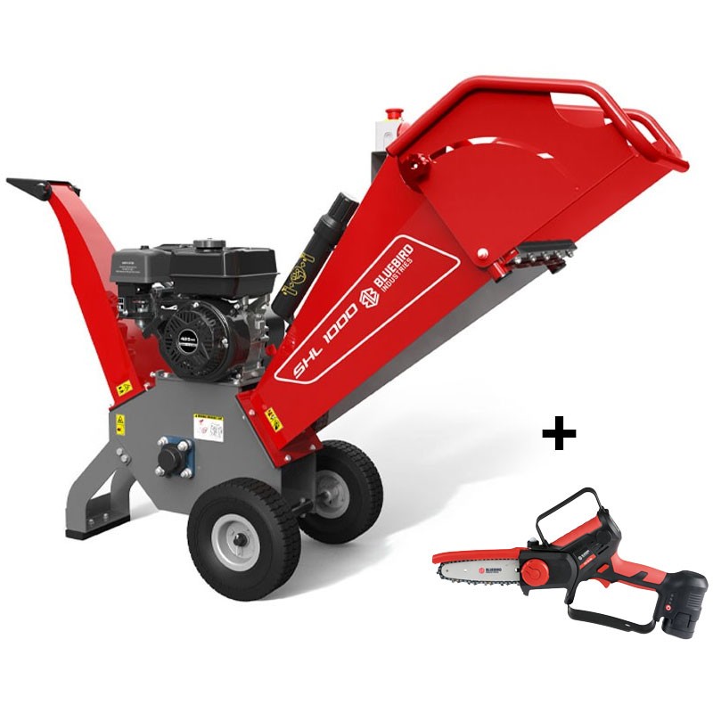 The Bluebird SHL 1000 wood chipper is a professional machine designed for shredding branches, twigs, and biodegradable waste from landscaping. Ideal for gardeners, maintenance workers, and agricultural workers, it ensures quick and efficient work after pruning. Its solid and compact structure makes it a reliable tool even in intensive use, thanks to its combination of power and practicality.