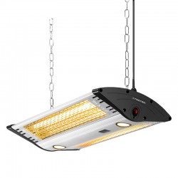 The Trotec IR 2000 C is an infrared ceiling heater designed to provide immediate, constant, and targeted heat in outdoor areas, both in private and commercial settings. Designed with a high-quality aluminum housing, it combines modern lines and functional design with weather resistance, making it perfect for terraces , balconies , verandas , loggias , outdoor dining areas , and trade fair stands . Its 2000 W power generates comfortable heat in seconds, without any preheating time, while the integrated LED spots provide atmospheric lighting that enriches the user experience.