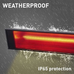 Its thermal performance allows for coverage of approximately 10 m² , making it suitable for terraces, verandas, and commercial spaces. The aluminum and glass-ceramic structure , weighing 3 kg and measuring 74 x 11 x 14 cm, is IP65 certified , ensuring protection from dust and humidity. The heating element offers a lifespan of over 5,000 hours , guaranteeing reliability over time even with continuous use.
