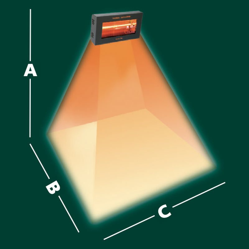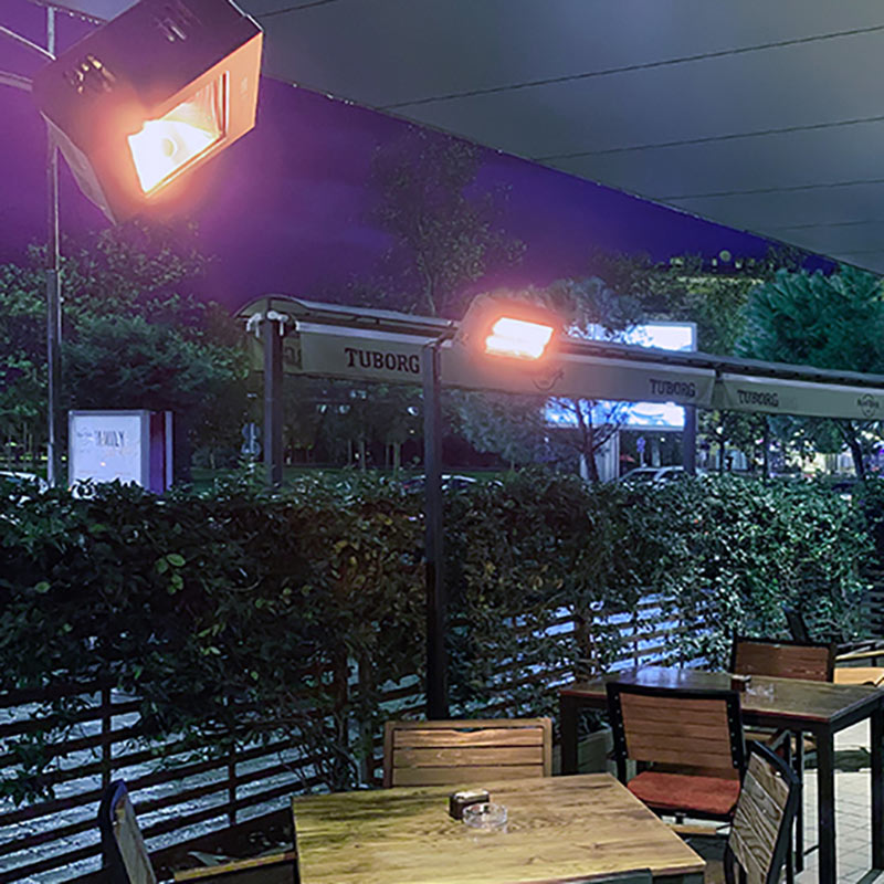 The lamp can effectively heat up to 20 m² of surface, with the intensity of the heat that can vary according to the installation height, the distance between the devices and the arrangement of multiple units. The synergy between multiple heaters optimizes the thermal coverage, improving performance.