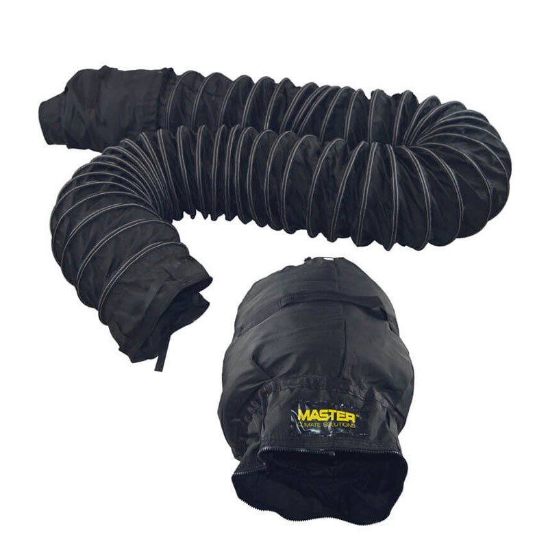Master heat-resistant flexible hose with a diameter of 340 mm and a length of 7.6 m . Ideal for ducting hot air; it connects to Master BV series heaters to transport hot air to the desired area.
