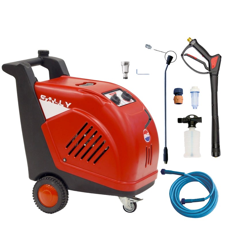 The Sally 140 bar pressure washer has a 230V single-phase connection and is equipped with an excellent boiler that allows the water to reach a maximum temperature of 75° C. The diesel tank has a capacity of 20 L.