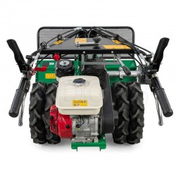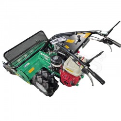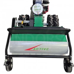 The Active AC 950 PRO is equipped with a Honda GX390 engine with 11 HP (8.2 kW) and a displacement of 389 cc . The working width of this flail mower is 87 cm , with an adjustable height from 5 to 80 mm . The cutting system is composed of a 48-blade rotor , optimising processing and minimising power consumption. The mechanical transmission with oil-bath gears guarantees greater durability and reliability. The rear drive wheels are fitted with twin sheet metal rims , making this agricultural machine capable of tackling the most demanding jobs.