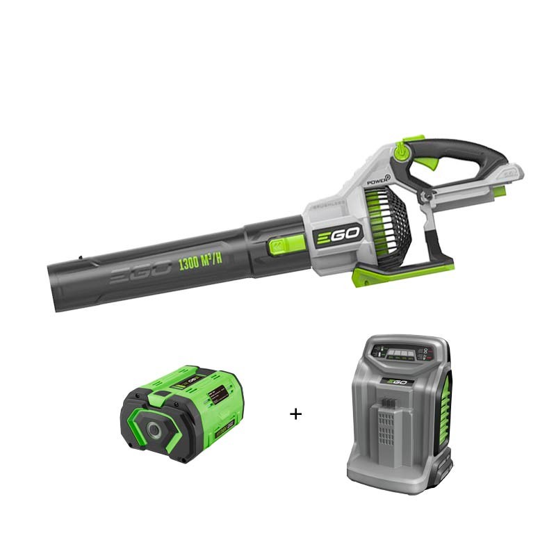 The EGO LB 7650 E leaf blower kit with 10 Ah battery and quick charger belongs to the EGO Professional range , effective for clearing outdoor spaces of leaves quickly and easily . The production power is 1300 m³/h , with a maximum air speed of 313 km/h , allowing you to work efficiently. The variable speed thumb selector allows you to easily adjust the working power .