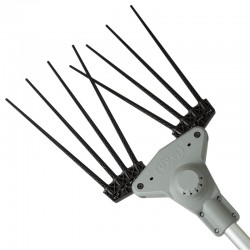 The harvesting head is equipped with quick-change flexible nylon and fiberglass tines, strategically positioned to easily penetrate the tree canopy. The alternating horizontal movement ensures high harvest yields, encouraging the olives to fall without damaging the fruit, branches, or leaves, fully respecting the plant.