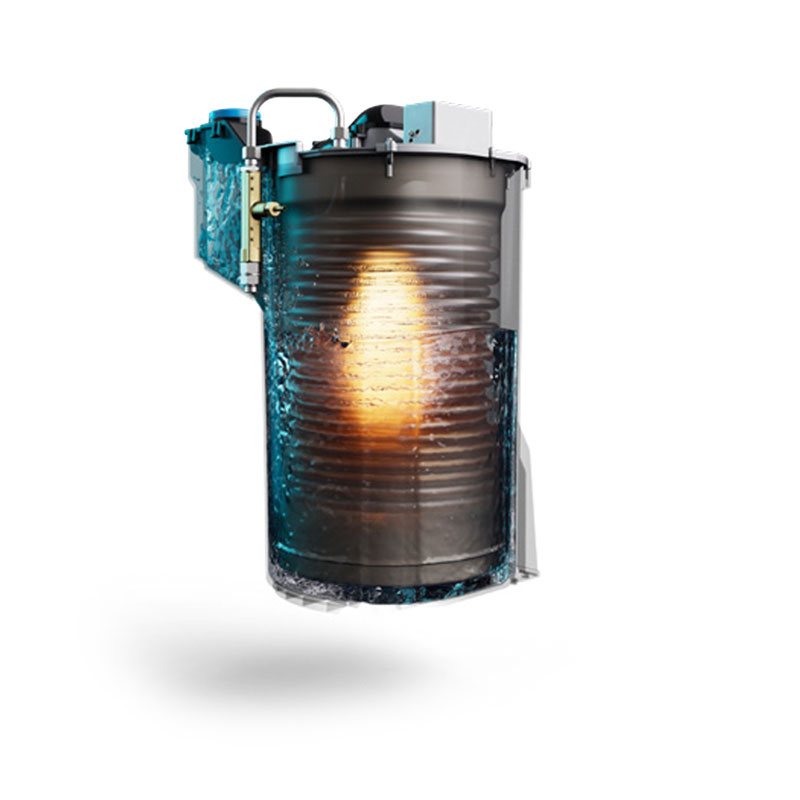 The AntiStone system prevents the formation of limescale in the boiler of professional hot water pressure washers, preserving thermal efficiency and reducing maintenance costs in intensive applications.