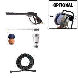 The pressure washer is complete with a pressure gauge to monitor the water pressure , an inspectable water filter to ensure that the water used is clean and free of impurities, and a standard lance holder support to facilitate the operator's work. Finally, a hose reel can be added as an option for better management and conservation of the water hose.