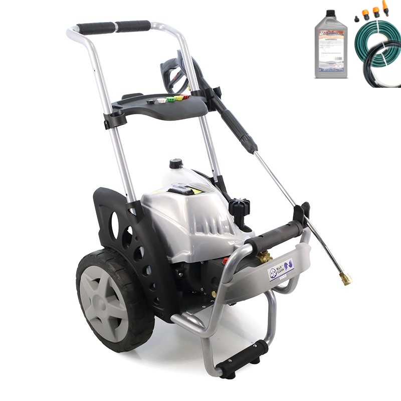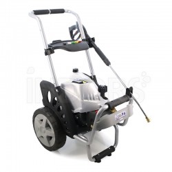 The machine's structure is highly durable and compact, and the large rear wheels with rubber tread, combined with the practical aluminum handle, allow for easy movement even on rough terrain. The pressure washer is equipped with a detergent suction system via a convenient 3-liter tank, an inspectable water filter, and pressure monitoring via the built-in pressure gauge ; both the pressure and the amount of detergent used can be adjusted .