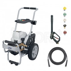 Annovi Reverberi AR 1003 cod.24385-V , compact professional-quality cold water pressure washer with a single-phase induction motor . The motor is of the highest quality and features an integrated thermal protection system; the latter's low rpm allows for continuous use even for extended periods and guarantees durability and reliability over time . The pressure washer is equipped with a three-piston ceramic pump with a connecting rod and crank system and also features an automatic by-pass valve with zero pressure in the pump head.