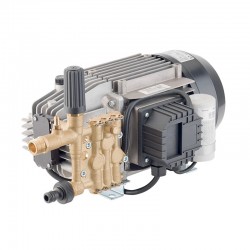 3-piston pump in tempered stainless steel with ceramic coating, connecting rod/crank system and brass head . Safety valve with pump head pressure reset , single-phase induction electric motor with thermal protection and remote total shutdown system of the pressure washer. Water intake from tank with self-priming function.