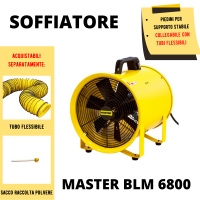 The Master BLM 6800 is a blower designed to provide air circulation in warehouses , large spaces , construction sites , and workshops . Increased airflow allows for faster removal of harmful gases, substances , and chemical dust , and helps with drying and air circulation after painting. Rapid, efficient air exchange helps maintain an optimal working environment.