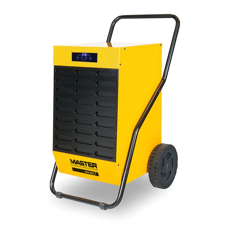 The metal frame makes the Master DH 62 dehumidifier shock-resistant . The steel handle and large wheels make the Master DH 62 condensing dehumidifier easy to move . These additional qualities compared to a home dehumidifier make the Master DH 62 professional dehumidifier a professional-quality product.