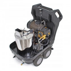 The pressure washer features a vertical boiler in painted steel , with a spiral burner cooling system driven by an independent electric motor, double coil and refractory concrete bottom. Furthermore, the Annovi Reverberi 6640 has a delay card for boiler shutdown, pressure regulation and built-in detergent suction.