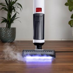 The Polti RollySteam WD10 Corded multifunction cleaner is equipped with a front LED light to identify hidden dirt and features a roller self-cleaning system and automatic drying system . Its compatibility with parquet, tiles, hard surfaces and carpets makes it an extremely flexible tool, particularly appreciated even in environments with pets, where the removal of hair and organic residues is essential.