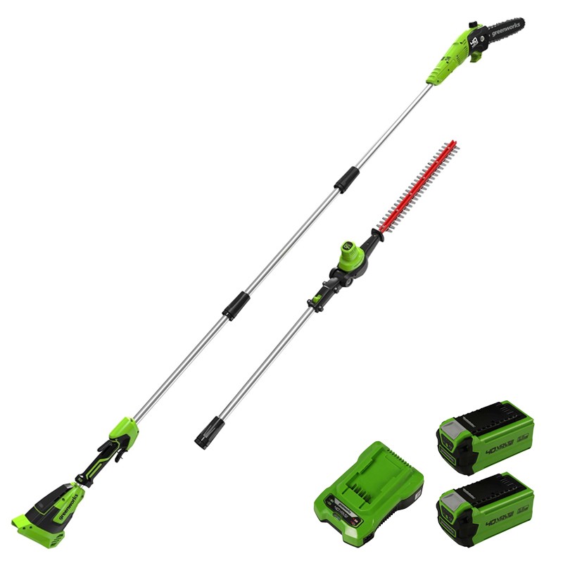 Thanks to the battery power supply, this pruner and hedge trimmer is in line with a more ecological approach to gardening compared to the use of more common petrol tools. Without emissions or unpleasant and dangerous odors emitted by combustion, Greenworks GD40PSHK2X is supplied complete with 2 2Ah - 40 V batteries and charger .