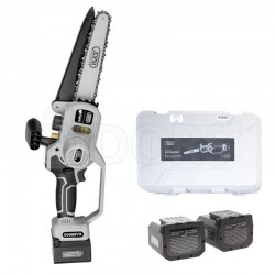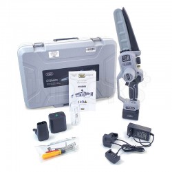 The Volpi KVS8000 is a cordless electric chain pruner powered by a 21.6V- 4.0Ah lithium battery. Its compact size makes this pruner much easier to use than traditional petrol-powered pruners.