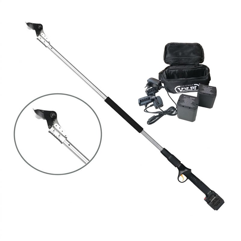 Secateurs made from top-quality materials, featuring a practical and ergonomic structure with an 80 cm long shaft. The secateurs are also equipped with a quick shut-off function, stand-by and double blade opening function. These Volpi KV81 secateurs are designed for the maintenance of parks and gardens, in agriculture and for pruning at height in orchards and vineyards.