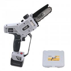 Volpi KVS5700 is an advanced chain pruner , designed for precise and easy pruning jobs thanks to its battery power and 700W brushless motor . With a 5” (9 cm) bar and a maximum cutting diameter of 80 mm , this pruner is ideal for efficient use in the garden or in a professional setting. This cordless pruner from Volpi stands out for its ergonomic structure, double safety system and cordless power supply with a 21.6V lithium battery, ensuring mobility and practicality.
