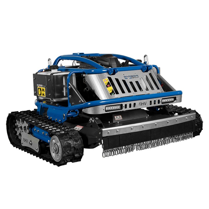 Thanks to RTK (Real Time Kinematics) technology, the system ensures millimetric positioning and the ability to record and repeat work paths with extreme accuracy, optimizing time and resources in professional operations. Furthermore, control can be extended via the BHV app, compatible with iOS and Android tablets and smartphones, which allows you to adjust the speed and width of the cutting area in real time, further enhancing the versatility and efficiency of the radio-controlled lawnmower.