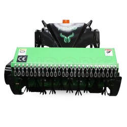 Equipped with two 650W brushless motors and a 25HP Loncin 764cc twin-cylinder petrol engine, the Pogo M-Tech MONSTER 100 combines power and energy savings. The 48V battery with automatic charging guarantees autonomy and operational continuity. The machine can work up to 3000 m²/h at speeds of up to 5 km/h . The robust structure and high-quality materials ensure long life, wear resistance and low maintenance costs, while also operating at low noise.