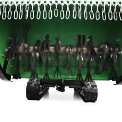 The Pogo M-Tech MONSTER 100 is a remote-controlled, tracked robot flail mower designed to tackle overgrown areas and stubborn vegetation efficiently and safely. Thanks to its 60 high-speed rotating blades , the Pogo M-Tech MONSTER 100 cuts branches, bushes, and woody twigs, providing a clean cut even where conventional systems would fail. This mechanism strikes and crushes branches, shrubs, and weeds, ensuring a powerful and precise cut even on resistant woody vegetation. Compared to traditional systems, the mulching hammer guarantees superior results in clearing undergrowth and overgrown areas.