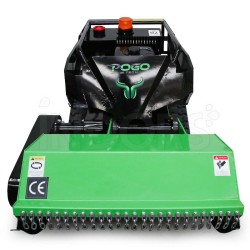 The Pogo M-Tech MONSTER 100 is a remote-controlled, tracked robot flail mower designed to efficiently manage dense vegetation, undergrowth, and overgrown areas. Equipped with 60 high-speed blades , it cuts branches, bushes, and woody twigs with a clean, even cut. Remote control allows for safe operation on rough terrain, orchards, vineyards, forest edges, or uncultivated areas, with cutting height adjustable from 2 to 20 cm without having to approach the machine. Built with durable, long-lasting materials, the Pogo M-Tech MONSTER 100 reduces maintenance costs and operates quietly, protecting the environment. With its compact size, weight of 380 kg, and work capacity of up to 3,000 m²/h , it is the ideal solution for professionals and enthusiasts who want to tackle difficult terrain. For steep slopes, we recommend the Pogo M-Tech SKK model.
