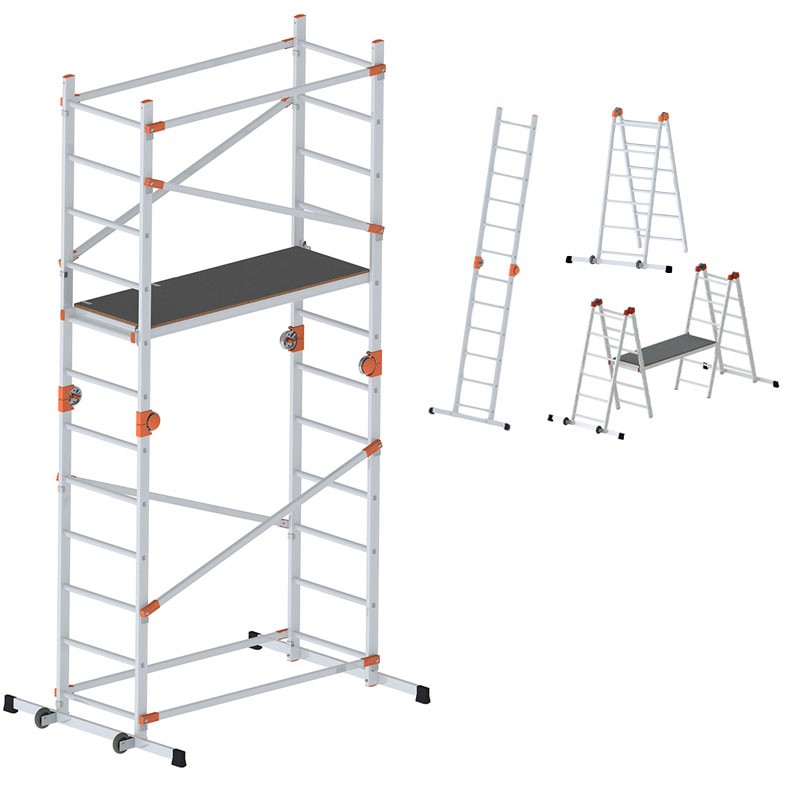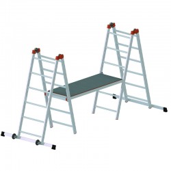The Gierre Fast&Lock 200 offers four operating modes thanks to the central locking/unlocking joints on the uprights. The rapid conversion between scaffolding , double ladder , leaning ladder , and work platform allows for adaptation to different application contexts with a single certified piece of equipment, reducing space requirements and equipment costs.