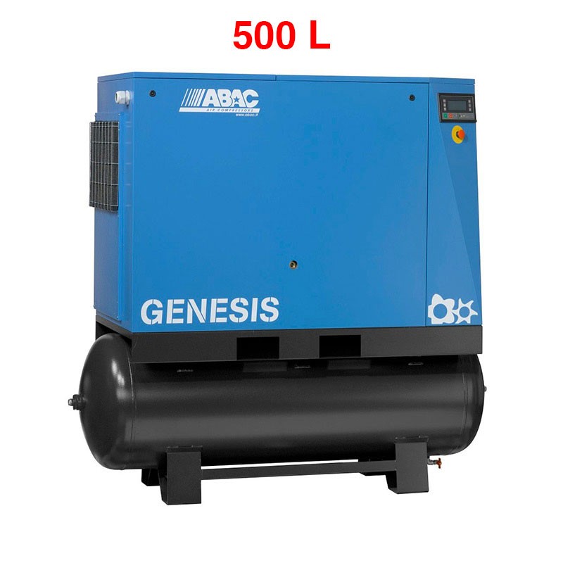 ABAC 's Genesis range represents the evolution of screw compressors for industrial use , offering an extremely compact, efficient and ready-to-use all-in-one solution . These compressors are designed to optimize space within systems , allowing for a significant reduction in overall dimensions and easier installation. This innovative approach not only saves space, but also optimizes management and maintenance costs .