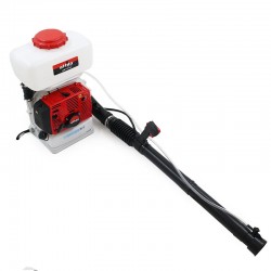 This advanced semi-professional shoulder sprayer is equipped with a 56.5cc 2-stroke engine powered by 2.5% mixture , with a 1.5 L fuel tank, diaphragm carburetor, electronic ignition and self-winding start.