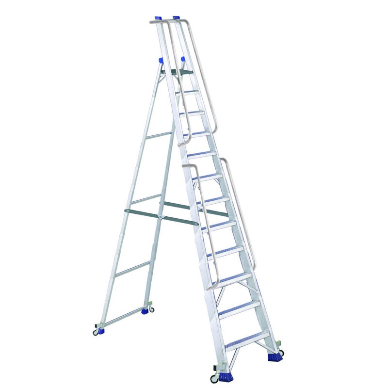 These ladders offer high resistance and are characterized by increased width , thus ensuring superior stability. Thanks to the double configuration with 12 steps in the ascending section and the guardrail they are equipped with, along with the platform that serves as a step, they ensure safe and efficient use.