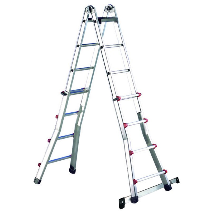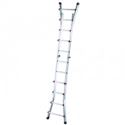The flexibility of this multi-level telescopic ladder allows it to be used on walls, steps, or as a double ladder. Constructed from extruded aluminum with ribs , it is designed for safety and stability, for both professional and hobby use. Furthermore, the presence of EN ISO 9606-certified welds contributes to the ladder's overall strength .