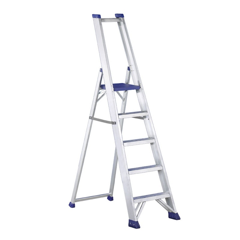 These Svelt Regina ladders are also suitable for professional use and are consequently equipped with more safety accessories. Regina SREGI120 features an aluminum body guardrail designed to protect the user from falls caused by forward imbalance. Thanks to the body guardrail, it is possible to use the ladder up to the platform using it as the last step.