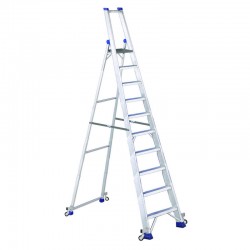 These ladders offer high resistance and are characterized by increased width , thus ensuring superior stability. Thanks to the double configuration with 10 steps in the ascending section and the guardrail they are equipped with, along with the platform that serves as a step, they ensure safe and efficient use.