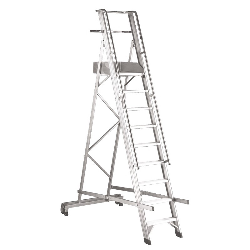 Made up of 15 steps, 2 Ø 125 mm wheels for easy transport by pushing , 2 armrests , platform , object holder , body guard , handrail , 15 cm footrest and bars to prevent accidental opening/closing, the Svelt SCASTE15 ladder is extremely safe and easy to use.