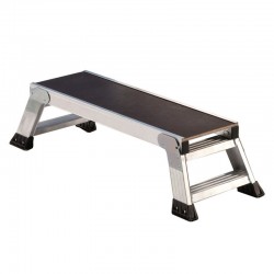 Made of durable ribbed extruded aluminum , this stool is ideal for professional use. Depending on the model chosen, it has 1 or 3 steps , with a platform height of 0.30 to 0.87 m and a maximum reachable height of 2.30 to 2.90 m . With a 30 to 45 cm wide walking surface made of non-slip, painted, weather-resistant phenolic wood , the Saliscendi stool is a valuable ally for working on machinery in the workshop and for accessing loading docks. Foldable with a zipper and automatic safety lock , Saliscendi is equipped with a handle to ensure easy transport and minimal space when stored.