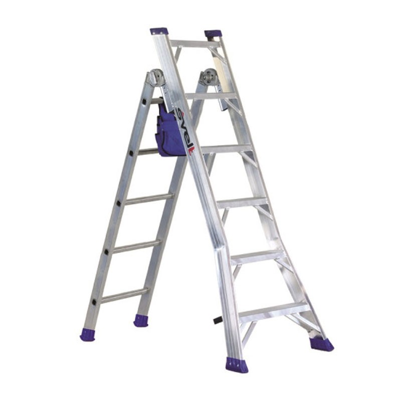 Thanks to the multi-level configuration , this ladder can be used both as a double trunk (trestle) and as a wall-mounted ladder in extended or double mode. Made of ribbed extruded aluminum, it guarantees safety and stability and is ideal for craftsmen , maintenance workers and farmers who need different positions and heights to be able to carry out different types of intervention. Equipped with a tool bag .